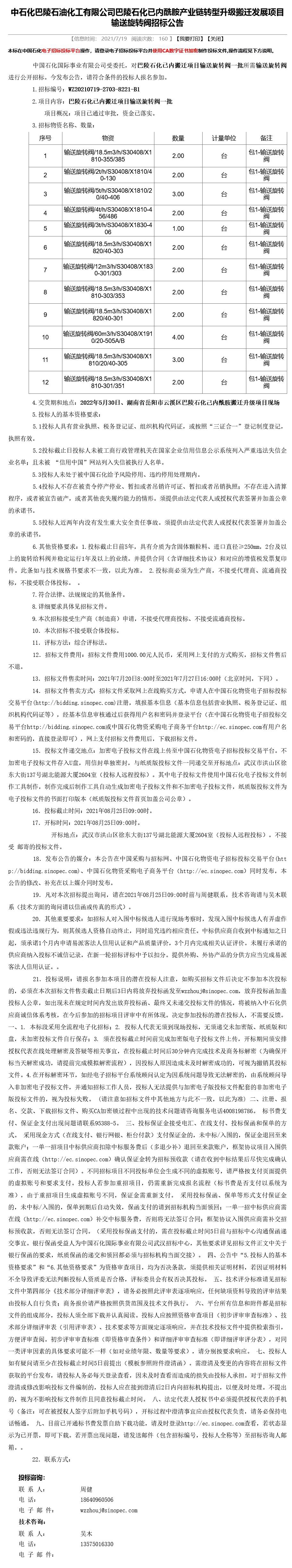 中石化巴陵石化已內酰胺產業鏈轉型升級搬遷發展項目輸送旋轉閥招標公告