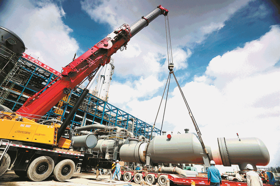 項目現(xiàn)場,煤焦制氫裝置首臺真空閃蒸分離器底泵正在單機試車,80萬噸/年乙二醇裝置二氧化碳吸收塔已經(jīng)起吊,管道試壓工作全面展開,焊接聲、切割聲不絕于耳......