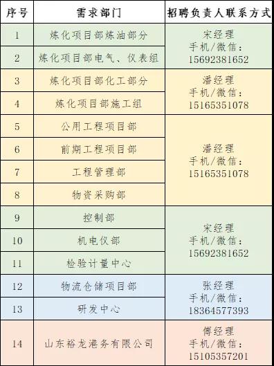 質量副經理1名、計劃工程師1名、環保工程師1名、安全工程師1名、立體庫設備工程師1名、立體庫工藝工程師1名、包裝線設備工程師1名、島外罐區設備工程師1名、煉油中間罐區設備工程師1名、火炬設備工程師1名。