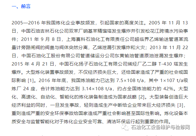 (一)我國煉化設備本質安全可靠與監管智能化存在的問題