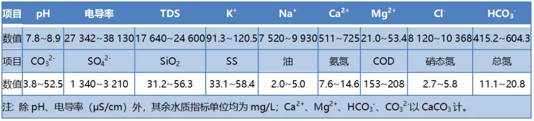 多年來,某石化企業廢水處理場深度處理回用站產生并排放反滲透膜濃水約50 m3/h,總溶解固體(TDS)為17 640~24 600 mg/L,屬于典型的高鹽廢水,高鹽廢水水質見表 1。